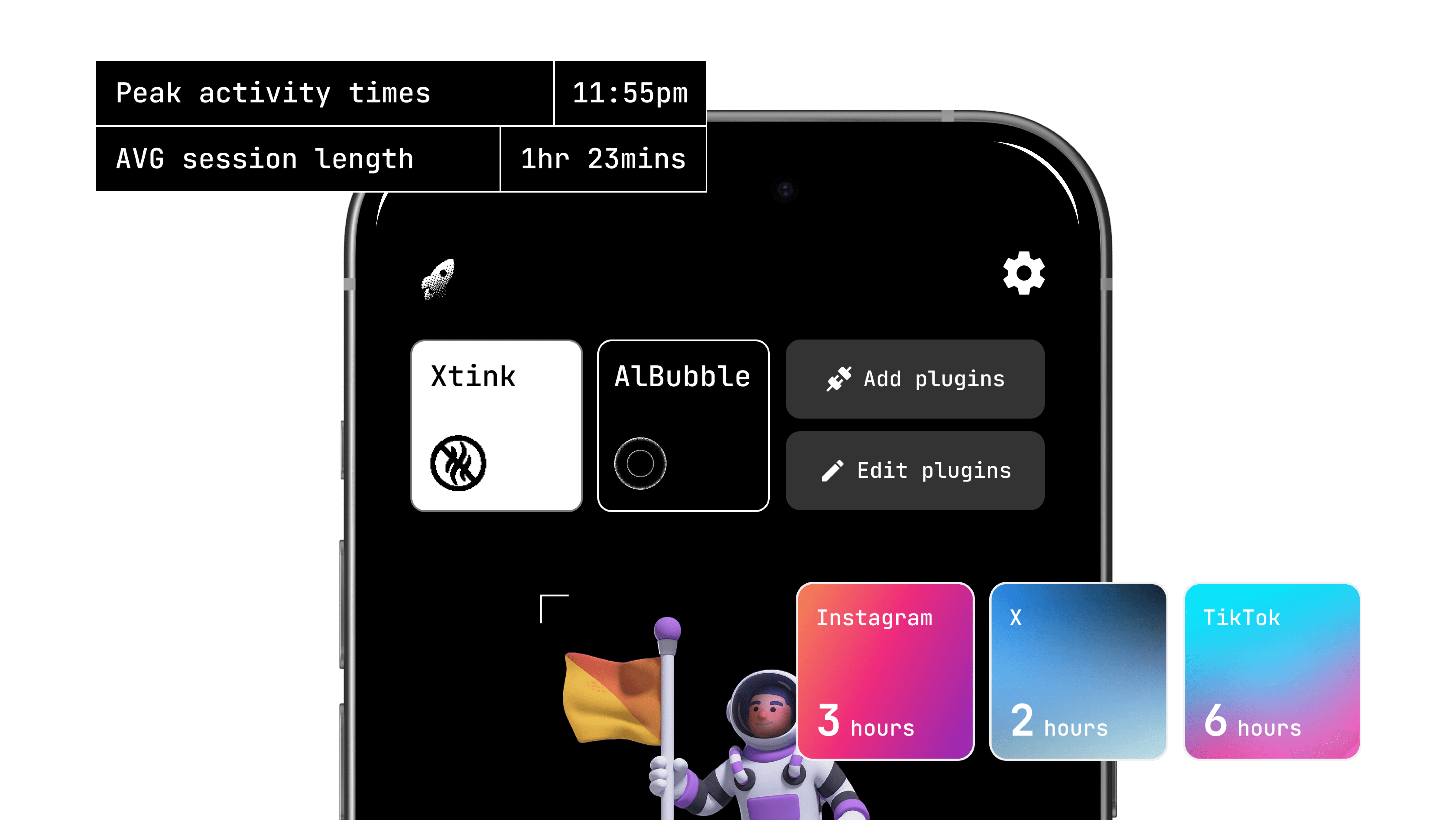 An intuitive dashboard that provides quick access to plugins and metrics for screen time.