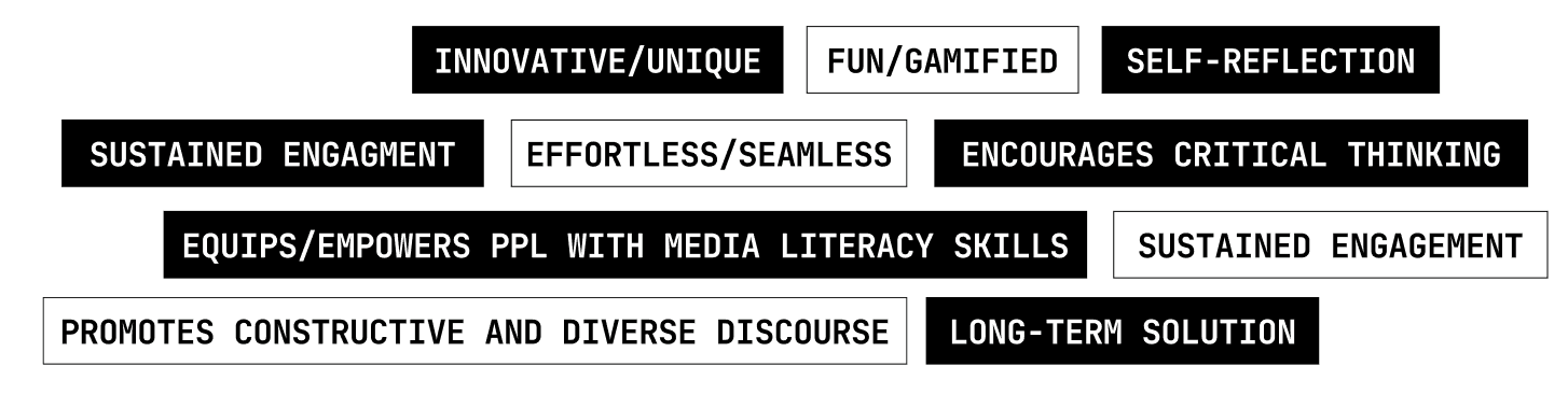 We were unable to reach out to users of older age groups (25+) and learn of their experiences due to time constraints. Media literary skills are essential to learn, no matter what age, and arguably those of older generations are the most susceptible to misinformation and algorithmic bubbles. However, we decided to focus our product on younger users as we had access to their direct experiences - we didn't want to base our insights on assumptions.