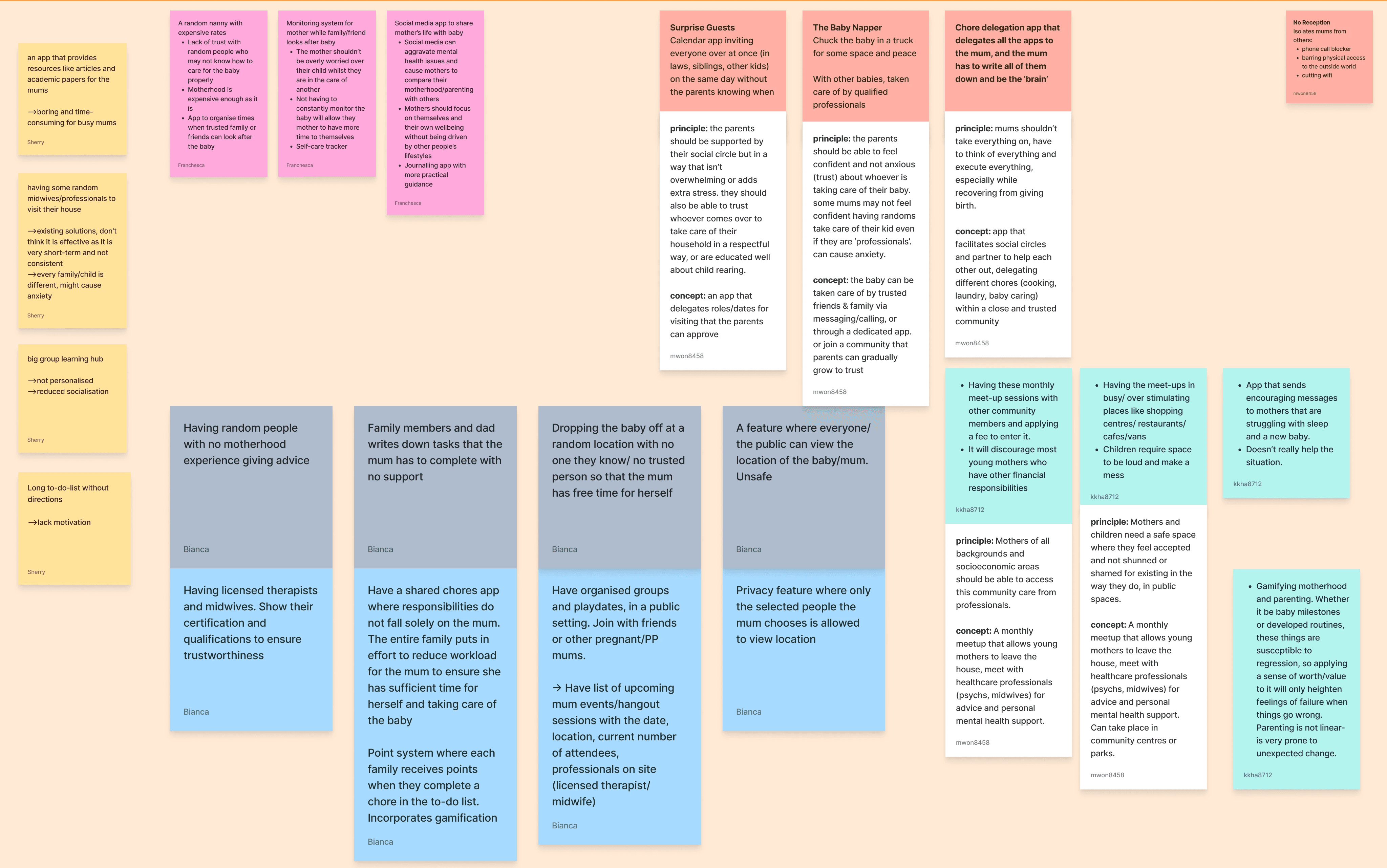 Mostly consisted of concepts that aggravated mothers’ stress and worries, finances and child-rearing responsibilities. The flipped ideas reaffirmed our exisiting ones, establishing a solid starting point for further conceptualisation.