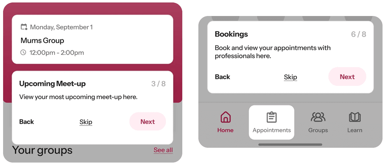 Mother and partners can find and join groups to interact with other families and organise meetups. Through these communities, they can receive ongoing peer support and form meaningful connections.