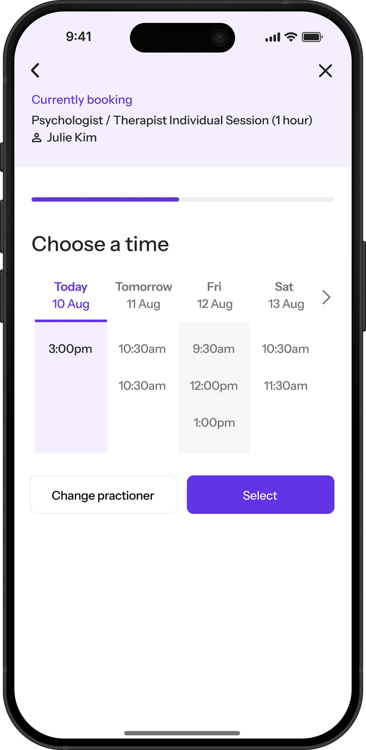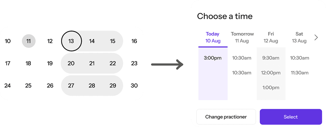 3. Booking appointment for Mum via Calendar - access to 1:1 sessions with professionals