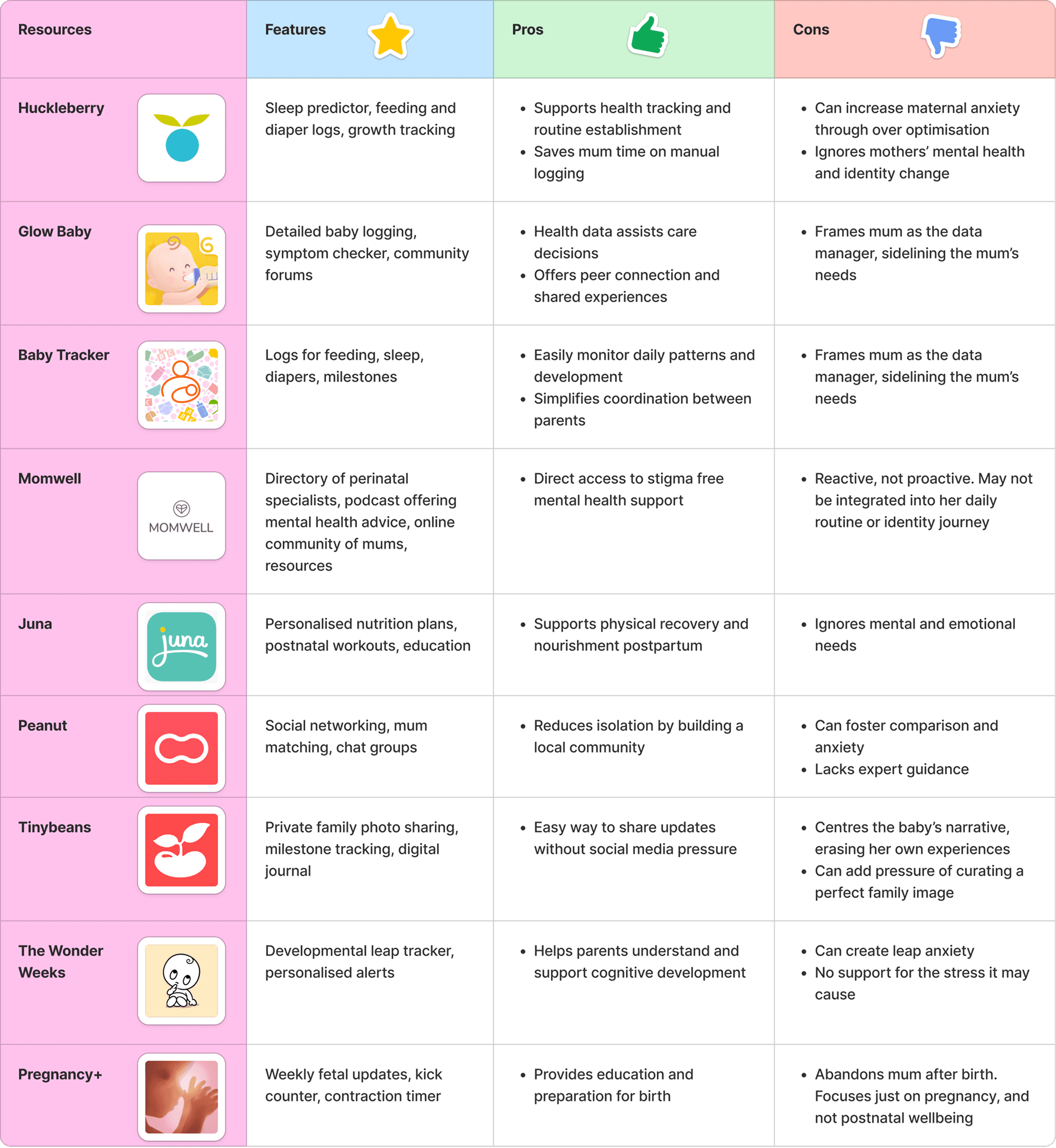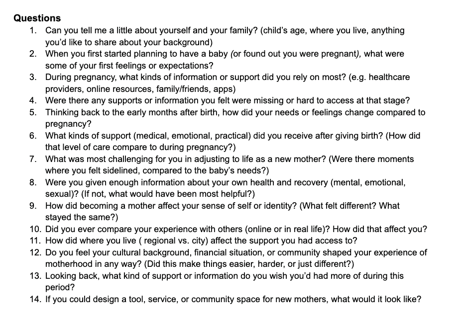Current apps and services were primarily focused on baby care and there was limited mental and emotional support for the mother. This gap highlights the potential for interventions that recenter the mother’s holistic wellbeing.