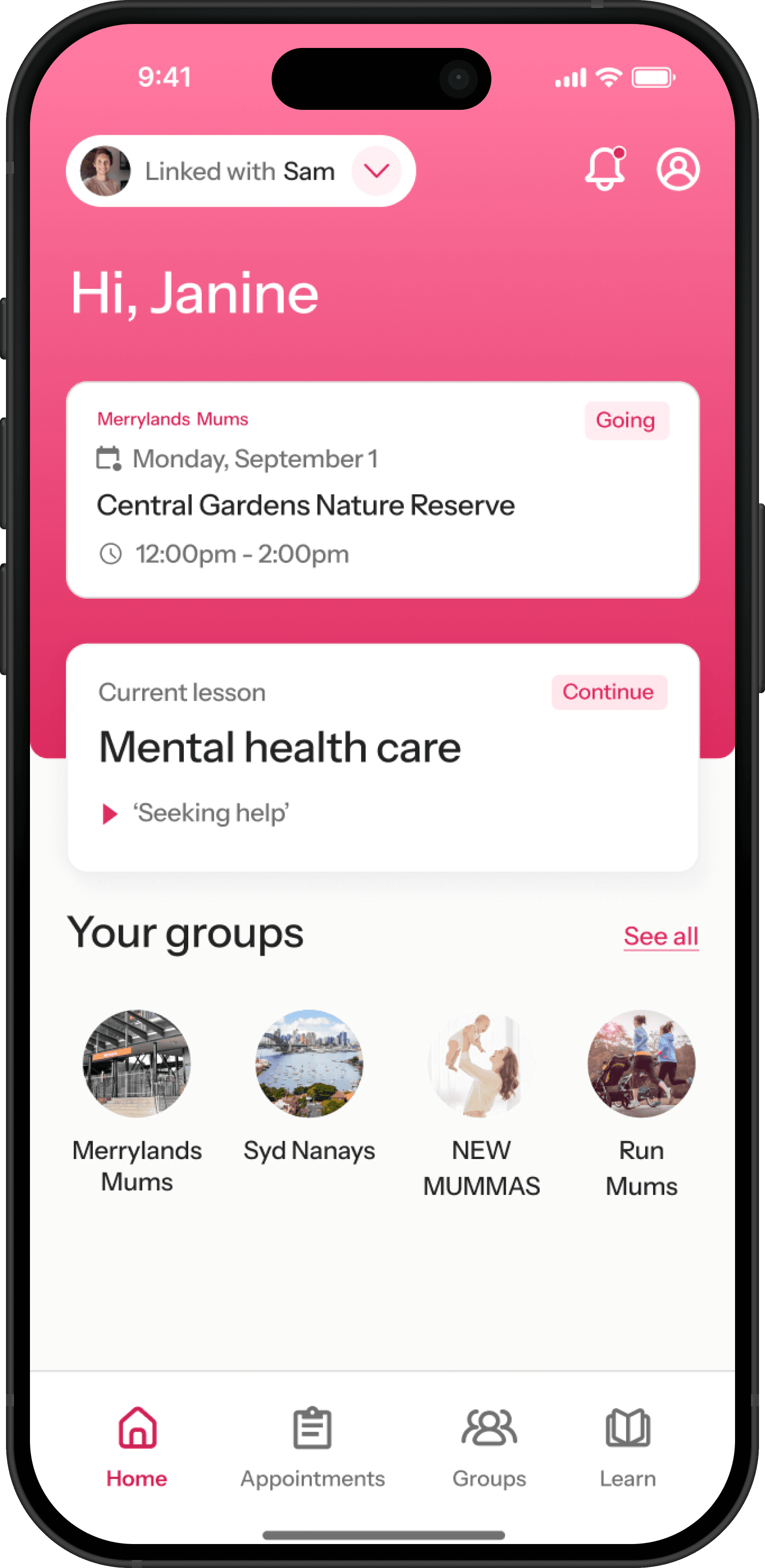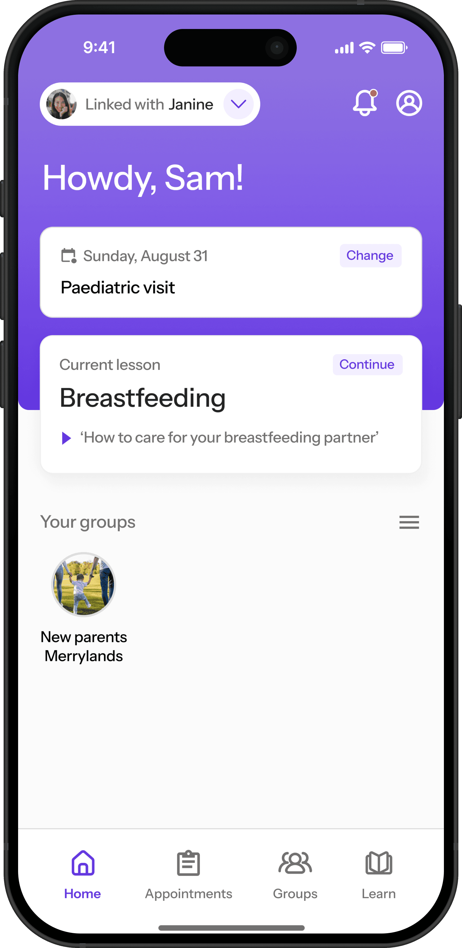 By intuitively linking accounts, mothers and partners are able gain access to shared information, such as upcoming appointments.