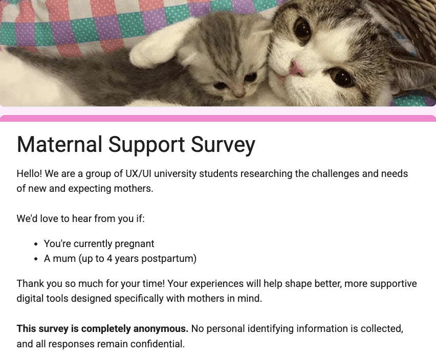 I was able to resonate with motherhood due to my identity and knowing the experiences of mothers around me. This also meant that I knew how difficult it can be, and so I was really keen on having the opportunity to design a solution that could support the needs and wellbeing of mothers.