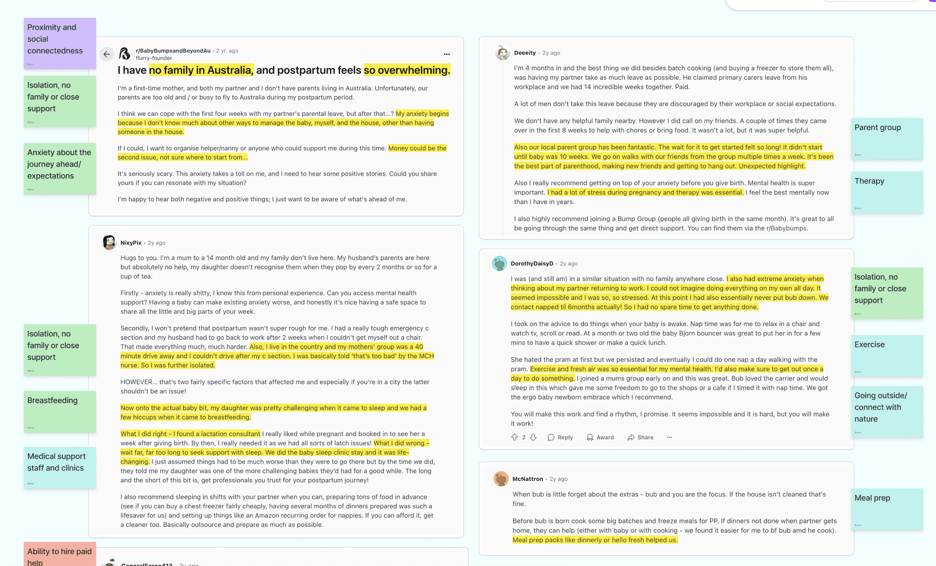 Circling back to the discover stage, we used online ethnography to learn more about the experiences of partners, as well as the experiences of mothers with their partner. It was important that we explored both POVs, to obtain a holistic understanding.