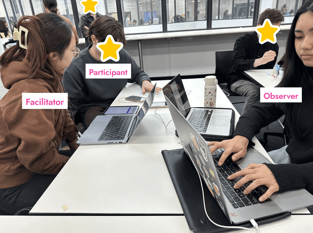 We conducted user testing with a total of 12 participants, in addition to one pilot participant who help us to refine our protocol. Participants were aged 18 to 44 years old, with a mix of genders and assigned roles (flows), reducing user bias and providing us with a mix of perspectives.